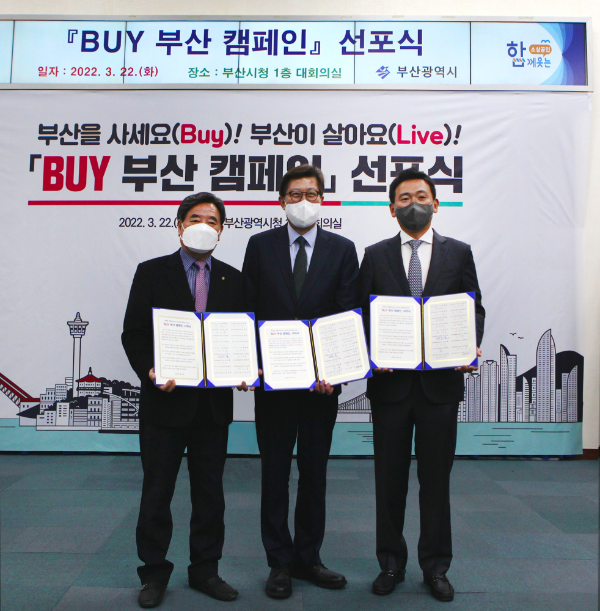 Áö³ 22ÀÏ ºÎ»ê½Ãû 1Ãþ ´ëȸÀǽǿ¡¼´Â ºÎ»ê½Ã µî °ø°ø±â°ü°ú Áö¿ª °æÁ¦°è, ¾ð·Ð»ç, ½Ã¹Î´Üü, ±â¾÷ µî °¢°è °ü°èÀÚ°¡ Âü¼®ÇÑ °¡¿îµ¥ ¡®¹ÙÀÌ(BUY) ºÎ»ê¡¯ Ä·ÆäÀÎ ¼±Æ÷½ÄÀÌ ¿·È´Ù. ´ë¼±ÁÖÁ¶´Â À̳¯ ¼±Æ÷½Ä¿¡ Áö¿ª Á¦Á¶¾÷ü ´ëÇ¥·Î Âü¿©ÇØ °øµ¿ ¼¾à¼¿¡ ¼¸íÇß´Ù.
